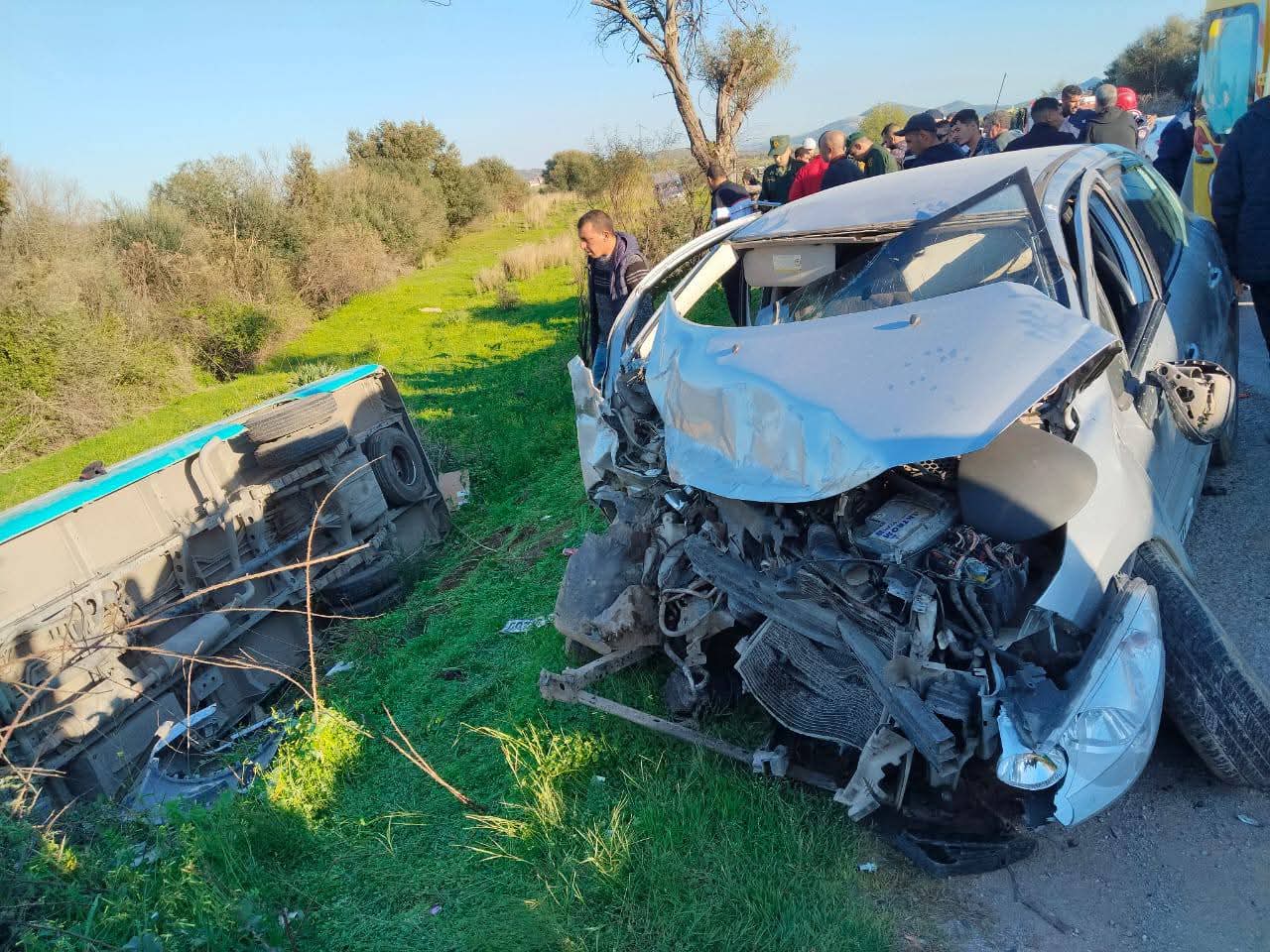 <h2>أصيب 11 شخصا، اليوم الثلاثاء، في حادث اصطدام بين سيارة وحافلة لنقل المسافرين و انقلابها بولاية سكيكدة.