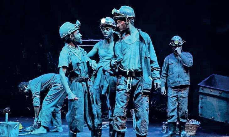 تدور أحداث المسرحية إبّان الفترة الاستعمارية في مدينة القنادسة التي تعتبر مركزا منجميا للفحم الحجري في المنطقة، وفي عمق منجمي تظهر ديكورات المسرحية معبّرة عن تلك الظروف القاسية، التي كان يعانيها العمال، وفي هذا العمق الجهنّمي كانت تُدار عملية نضالية للاستيلاء على الديناميت من مغازة إحدى الثكنات العسكرية.